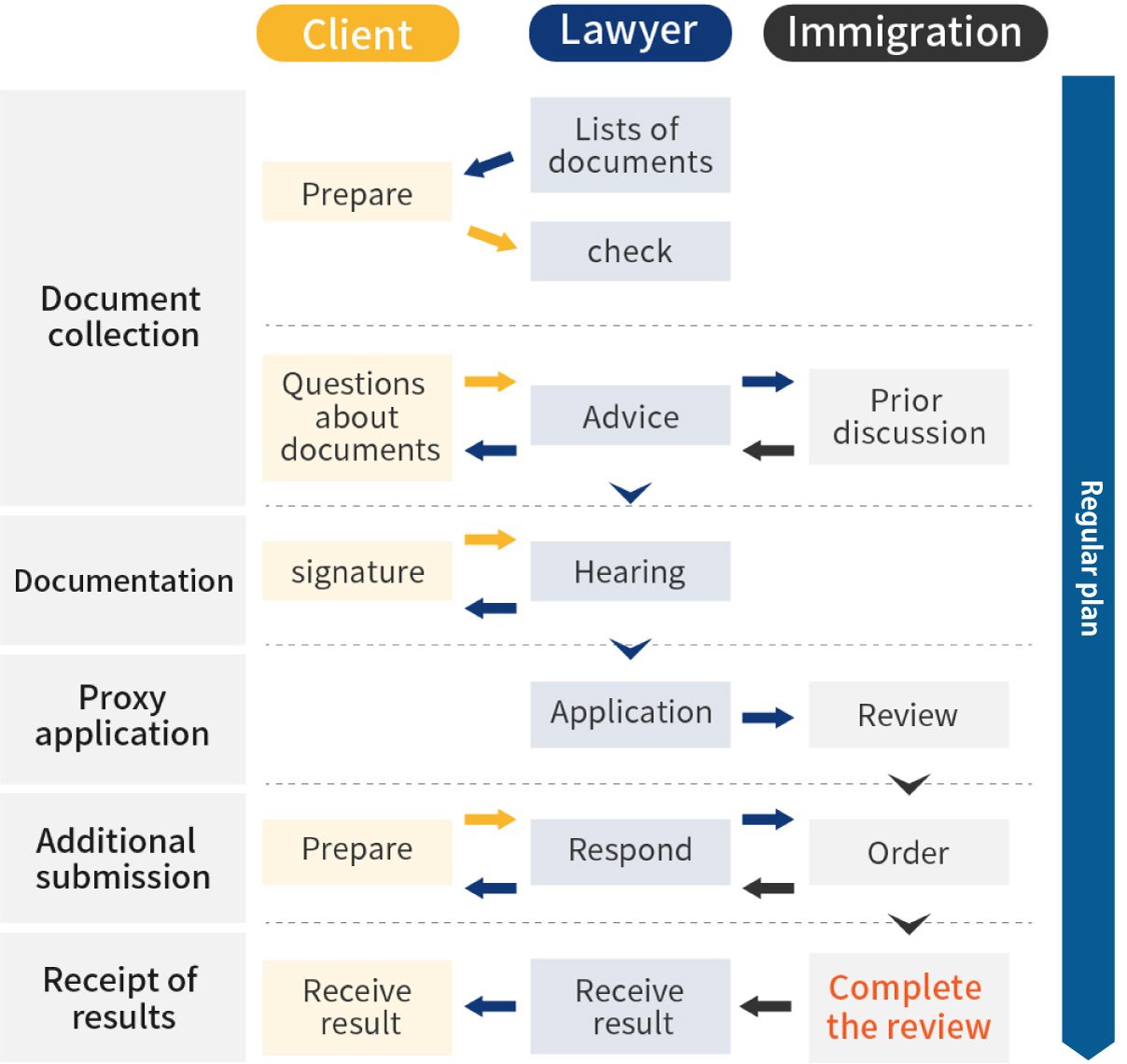 In the case of the Regular Plan, if the client's permanent residence application is rejected, the lawyer in charge will confirm the reason for the refusal with the immigration official free of charge.
